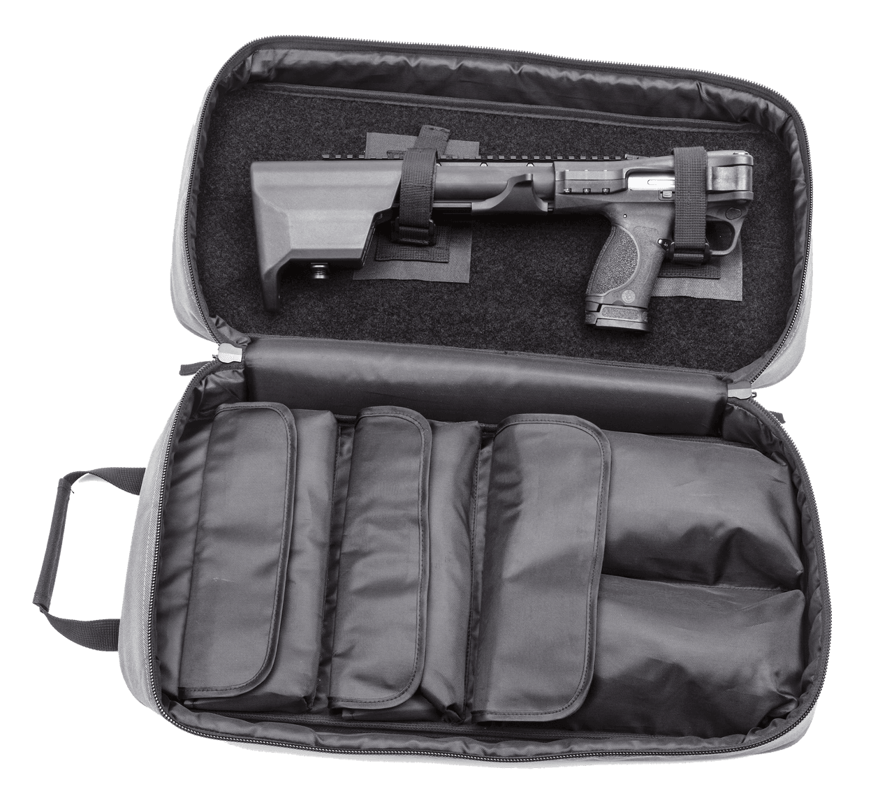 Additional features include a handguard with an upper Picatinny rail and M-LOK accessory slots, what Smith calls a flat-face trigger, and the typical M&P9 pistol’s interchangeable palm swells. The buttstock holds two extra mags. It ships with a carrying bag designed with multiple Velcro storage compartments and has an MSRP of $659.